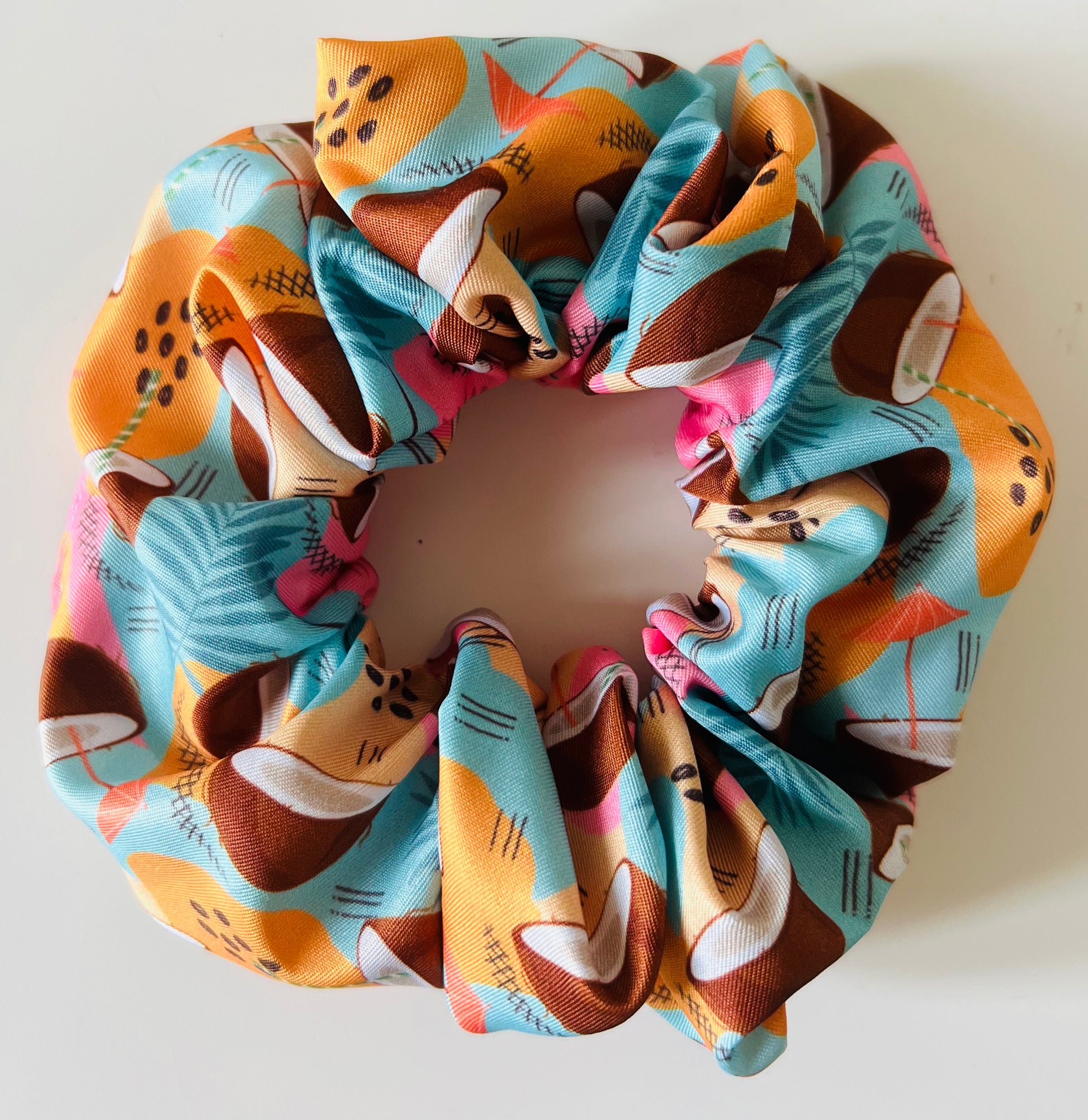 Xl hair scrunchie made from a satin/polyester mix material with this fun coconut 🥥 printÂ