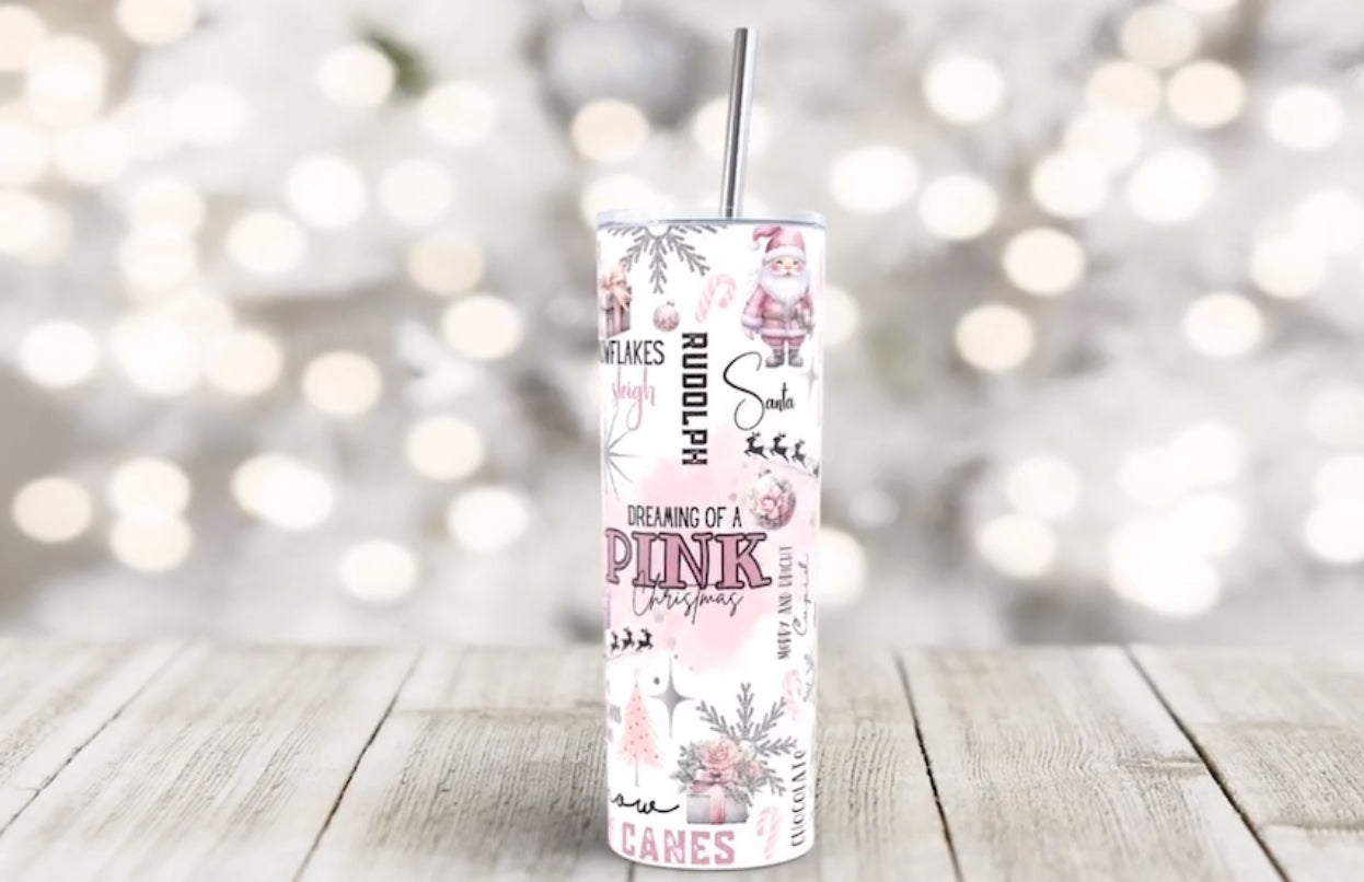 Stunning design Dreaming of a pink Christmas on my 20oz stainless steel tumbler