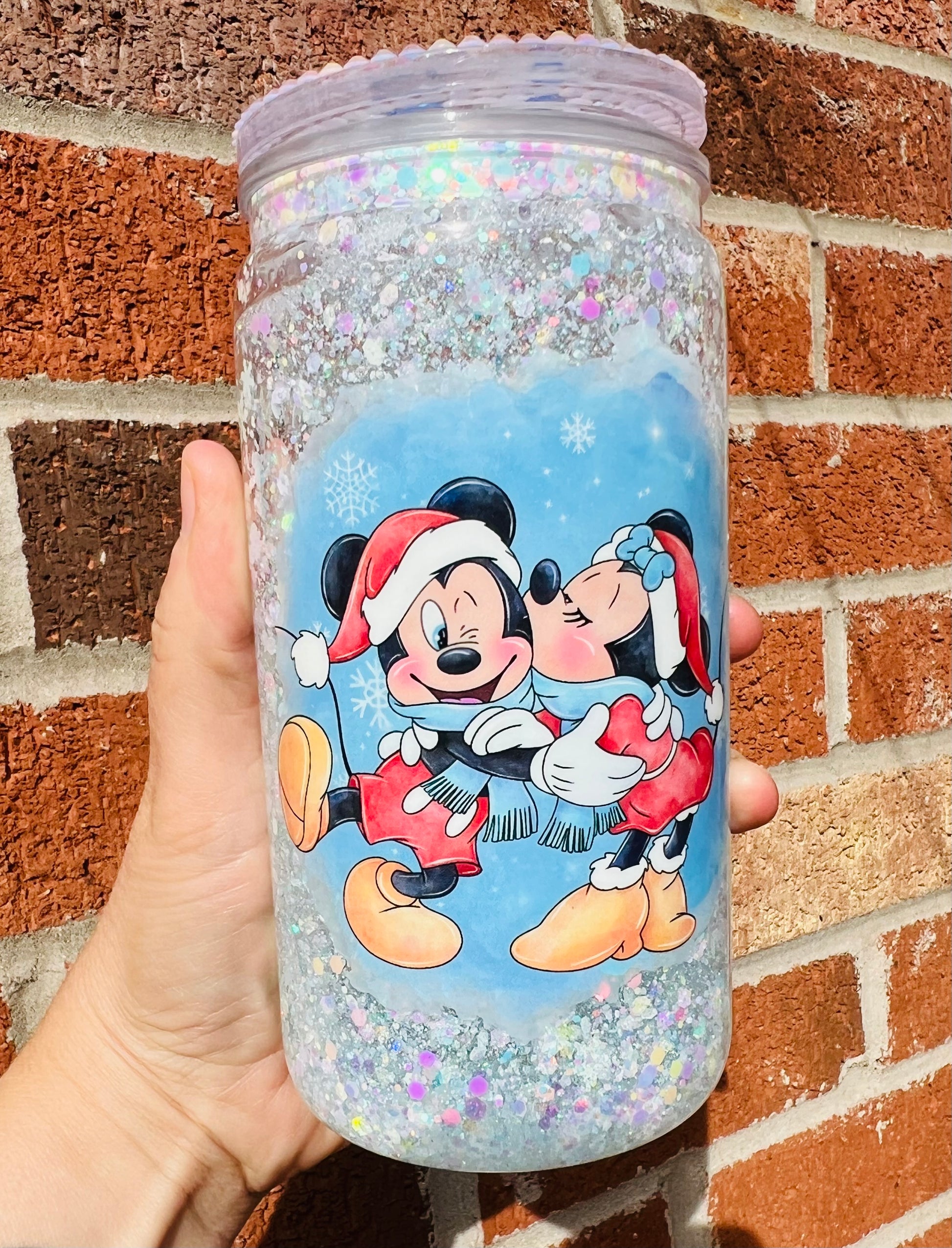 Mr & mrs Christmas mouse acrylic glitter globe tumbler